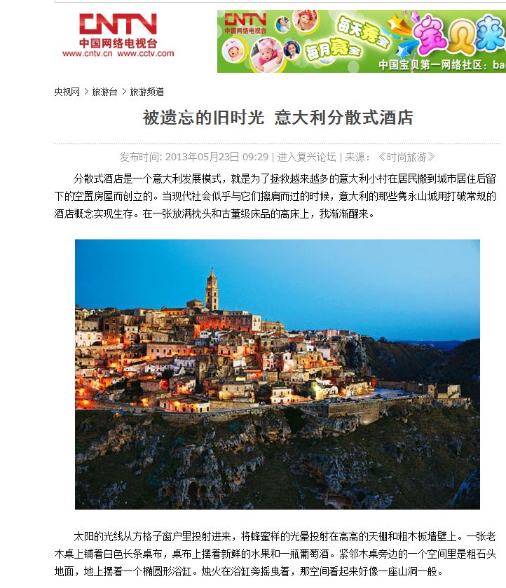 Nell’articolo si parla dell’albergo diffuso come modello italiano di ospitalità, di Giancarlo Dall’Ara “creatore di questo concetto” e in particolare dell’albergo diffuso di Matera